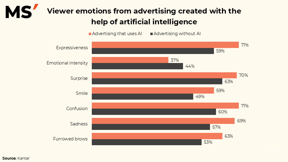 Advertising created with the help of artificial intelligence shows a distinctly different emotional impact compared to traditional approaches — and the difference is clearly visible in the numbers.